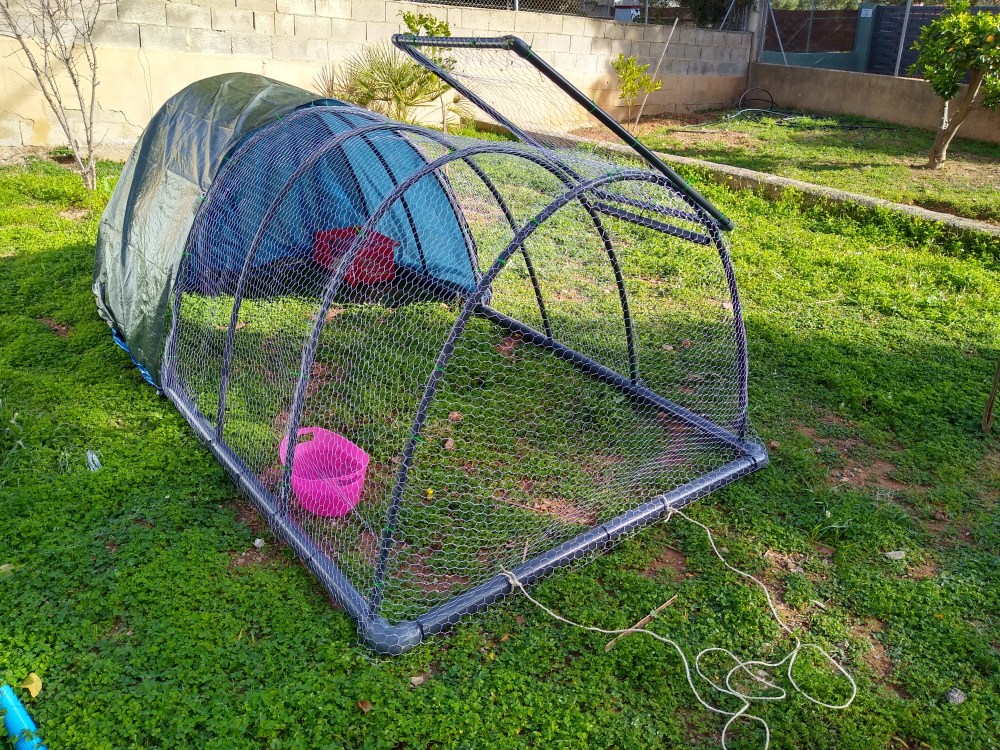 Inevitably, with the onset of an early spring, thoughts have turned towards the garden so we have started the process of preparing the beds and early sowing. We sacrificed a lot of produce last year as we had to vacate the house for renovation works during the summer but I’m hopeful that this year will be even more productive. There’s such a long season of good weather so I’ll be interested to see how well we can manage the planting and harvesting. The good news is that the chickens have started laying regularly so we have a healthy supply of eggs each day. Lizzy has become a chicken whisperer and spends a lot of time with them and loves to collect the eggs. Even the two cats are fascinated by them and it’s a common sight to see them all together in the garden. The chickens have been allowed to free range throughout the garden and they have done a great job of keeping down the weeds and preparing the soil with their scratching and feeding. However, now that sowing has begun I cannot allow them to roam freely. They have ample space in their enclosure but I have also made them a mobile ‘chicken tractor’ into which they can go each day to continue the weed and soil work in whichever area requires it.